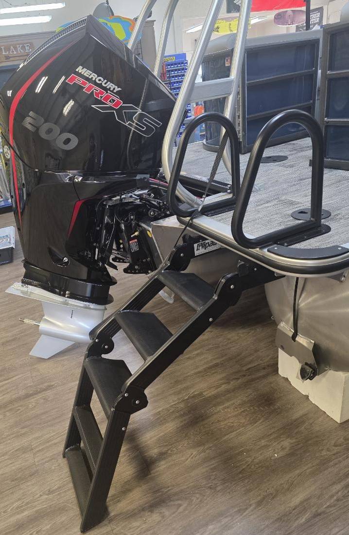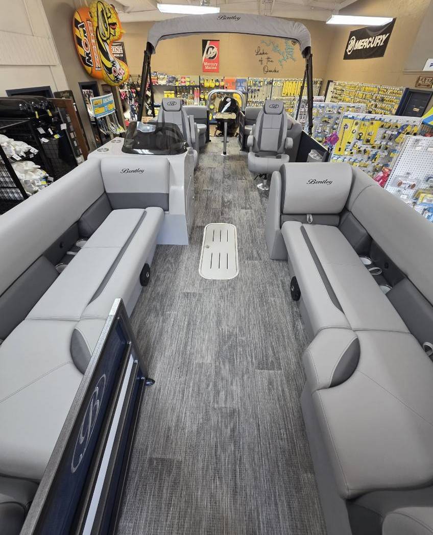 - 5-Year Bow to Stern Warranty (Limited) 3/4" - 7 Ply Marine Grade Plywood w/Lifetime Warranty 25" Diameter Tubes w/Lifetime Warranty (Workmanship) 5/8" Full Solid Keel All Welded Aluminum Transom w/Built-In Fuel Tank w/Lifetime Warranty (Workmanship) Composite Built in Fuel Tank - 32 Gallons .190 Hat Channel Crossmembers at Motor Mount Area Powder Coat Railing Custom Fiberglass Console OEM Analogue Gauges Speedometer Tachometer Voltage and Fuel Switchpanel w/Easy Access Resettable Breakers JBL JAM3000 Stereo w/4 Speakers 12 Volt Receptacle w/Dual USB Charging Ports Led Navigation Lights and LED Docking Lights Sealed "Deutsch" Style Electrical Connectors SeaStar Extreme Mechanical steering w/Tilt Black 10' Bimini w/Quick Disconnect Rotocast Furniture w/Integrated Cupholders Midback Standard Helm Seating Bentley Premium Radius Wide-Step Aluminum Ladder Table w/Cupholders Marine Grade Vinyl Woven Flooring Bumper Guard w/Rubber Insert